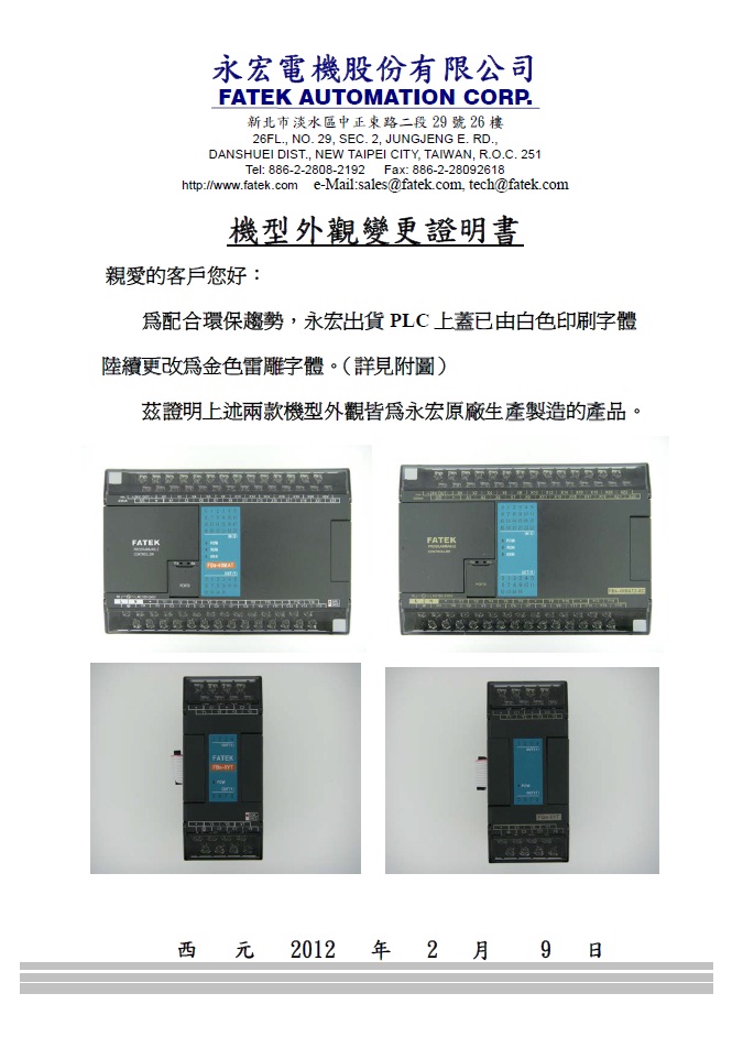 永宏P(guān)LC產(chǎn)品面板變更公告